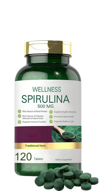 संपूर्ण पोषण: स्पिरुलिना प्रोटीन (लगभग 60-70%), आवश्यक अमीनो एसिड, विटामिन (जैसे B12, A, E), और खनिजों (जैसे आयरन, कैल्शियम, फास्फोरस) का एक समृद्ध स्रोत है। यह शरीर को दैनिक पोषण प्रदान करता है।
